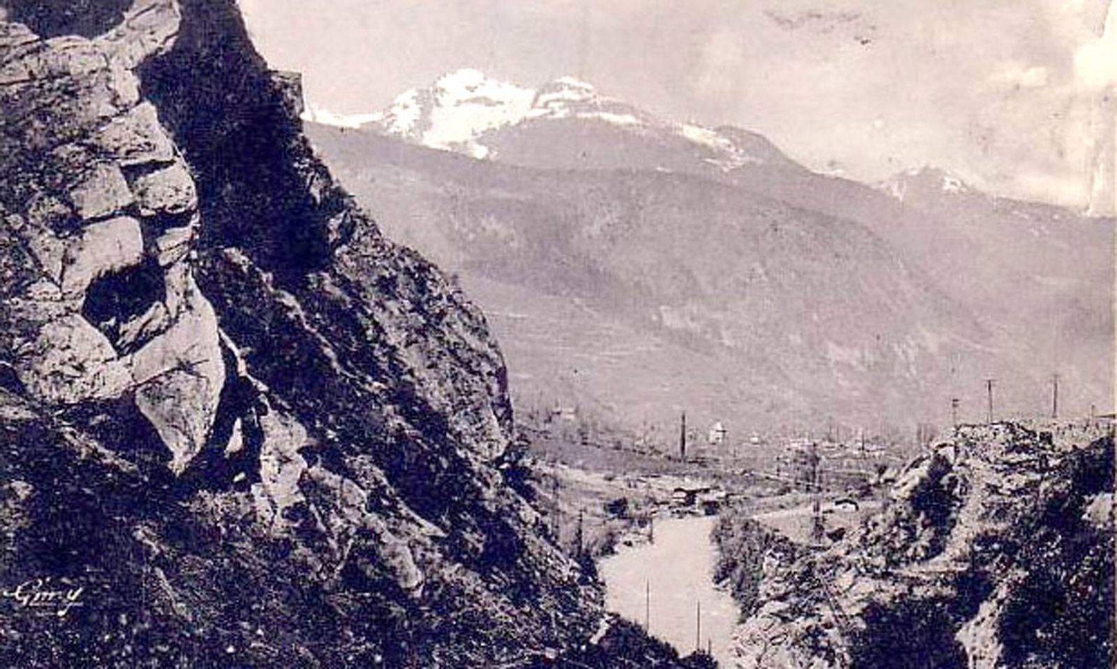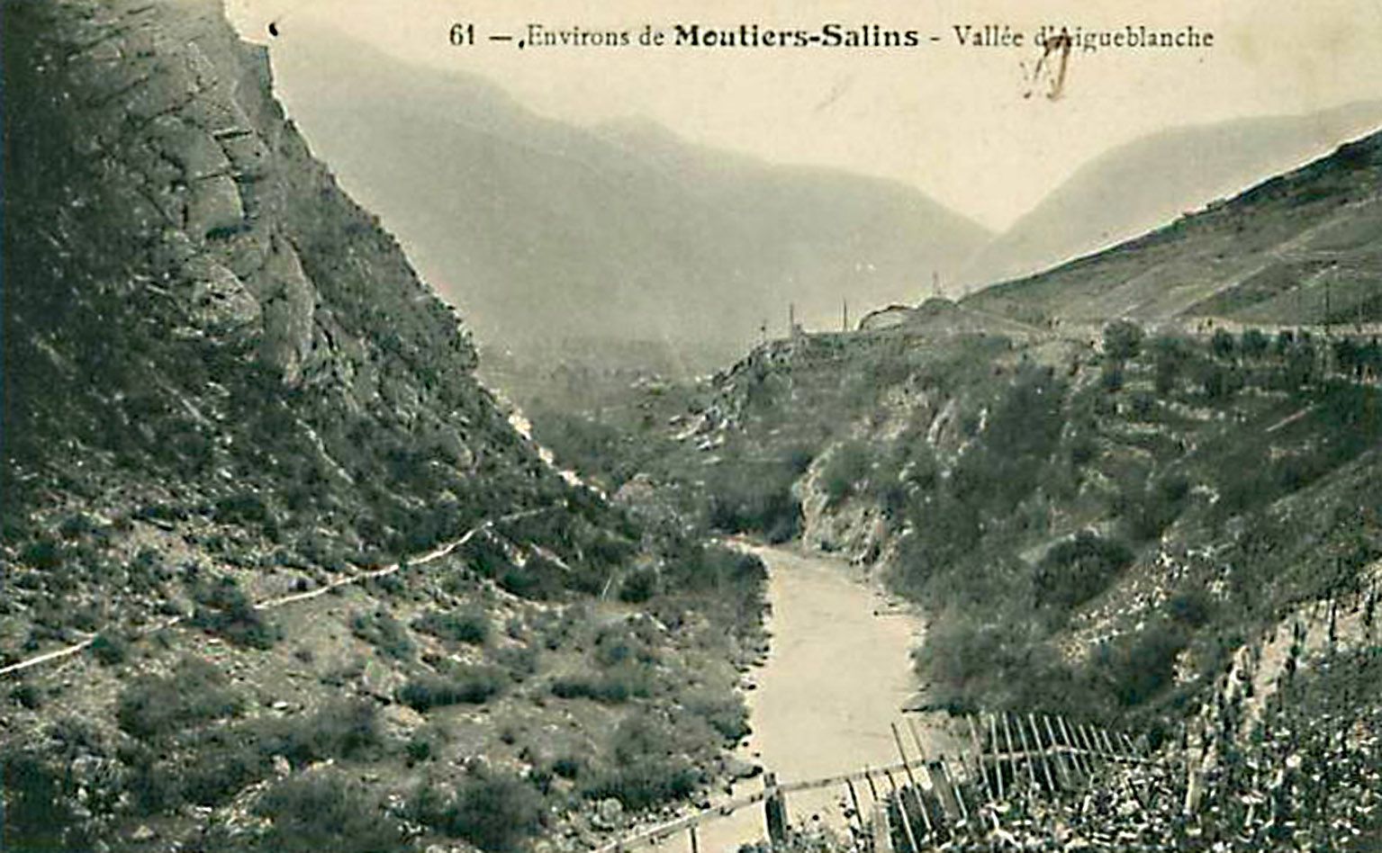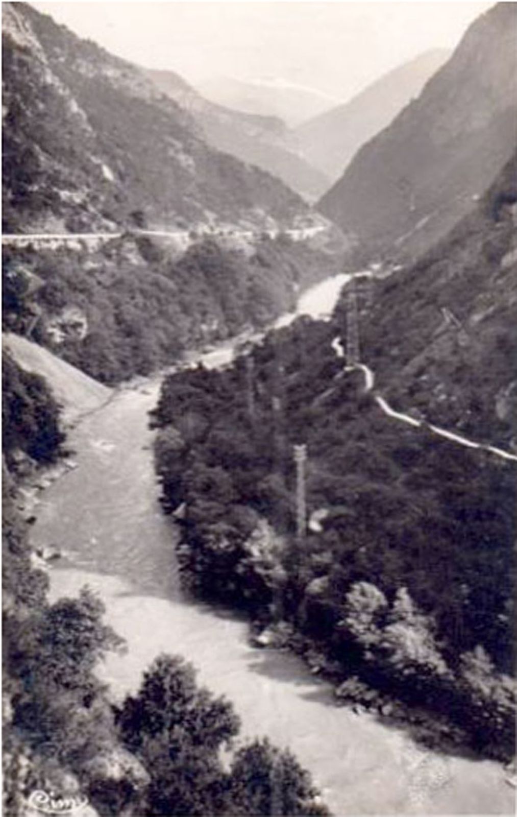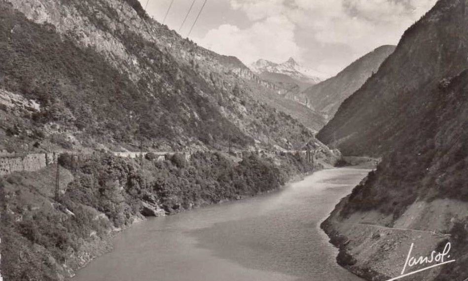 Les gorges de ponserand et la voie romaine avant la construction du barrage . On peut voir des cultures en terrasses sous la route actuelle